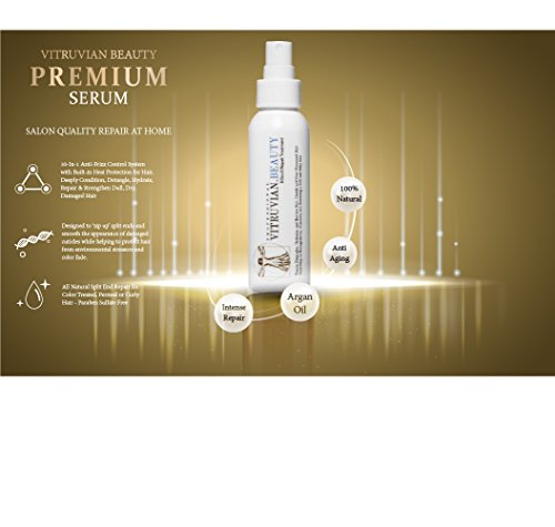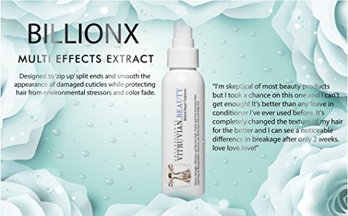 Vitruvian Beauty BillionX Split End Repair Treatment for Healthy Sexy Hair - Vitamins for Hair Support to Grow Hair Fast without Split End Trimmer- 100% Natural Hair Treatment PROVEN BillionX SPLIT END REPAIR MEANS HEALTHY SEXY HAIR FASTER: Patented MICROCAPSULE SYSTEM Delivers BILLIONS of BEADS OF BIOACTIVE REPAIR MOLECUES PER DROP to Hairs Damaged Core for Extreme Results PROVEN BillionX SPLIT END REPAIR SYSTEM RESTORES SHINE & HEALTHY SEXY HAIR FAST Struggling with Split Ends & Dry, Damaged, Frizzy Locks? There are millions of causes, and a proven way to fix it: Vitruvian Beauty BillionX Split Hair Repair BILLIONS of SUPER-CHARGED BIOACTIVE REPAIR MOLECULES REPAIR ROOT CAUSE OF SPLIT ENDS Unlike most split end repair systems (which contain silicones which only temporarily improve the appearance, yet don't solve the problem)... Vitruvian Beauty's Scientifically Proven BillionX Split Hair Repair Microcapsule System instantly repairs & restores by delivering billions of beads of bioactive repair molecules per drop directly at hairs damaged core-shutting split ends closed, then smoothing each cuticle, prevent against future damage and even stopping frizziness-meaning you get healthy sexy hair faster. 100% NATURAL PARABEN, SULFATE, CRUELTY FREE 10-In-1 ANTI FRIZZ CONTROL SYSTEM REPAIRS & PREVENTS AGAINST CAUSES of SPLIT ENDS for ALL HAIR TYPES, EVEN IF YOU COLOR, PERM or HEAT TREAT Don't Wait until more chunks of hair begin to break off and Don't Use Temporary Silicone Split End Repair Treatments that only gloss over the issue... Repair split ends and restore your healthy sexy hair when you add this AMAZING affordable split end repair solution to your cart now.Feature