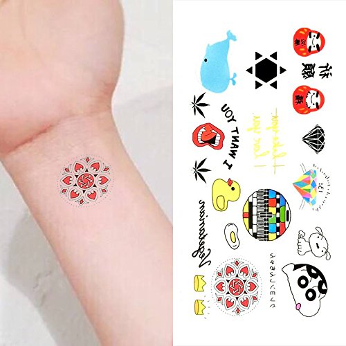 Oottati Small Cute Temporary Tattoo Damour Whale Diamond Duck Mouth (2 Sheets)