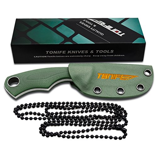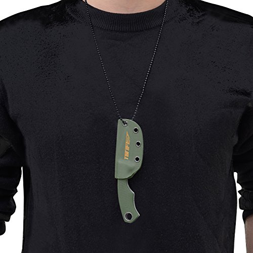 Tonife Fixed Blade Neck Knife Full Tang 4-5/8 Inch Overall with Kydex Sheath and Ball Chain