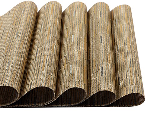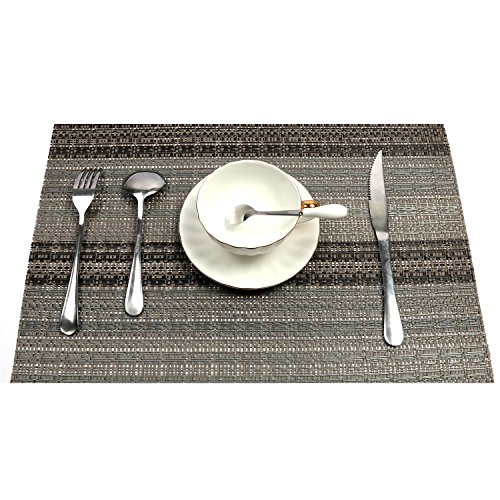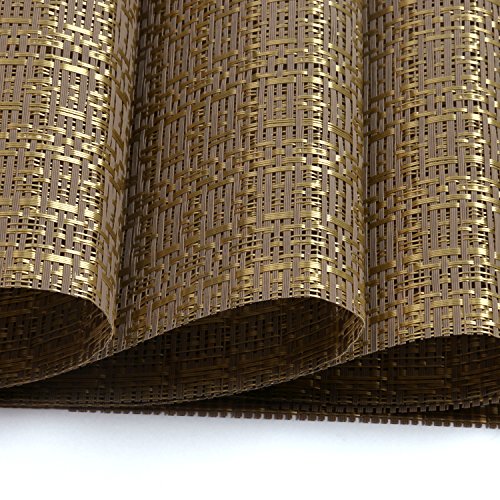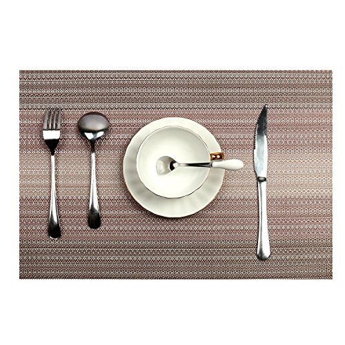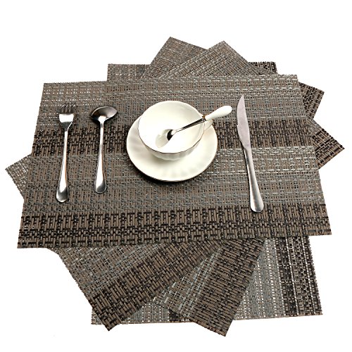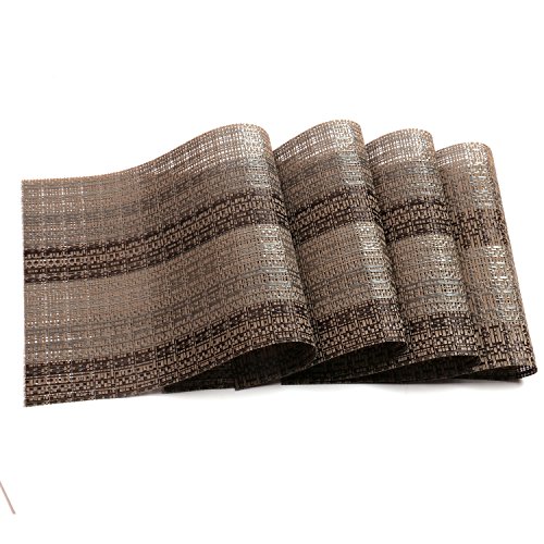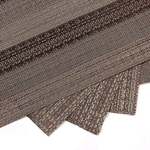 PAUWER Placemats for Dining Table Woven Vinyl Non-slip Heat Insulation Placemat Washable Table Mats Set of 4 (Coffee)
