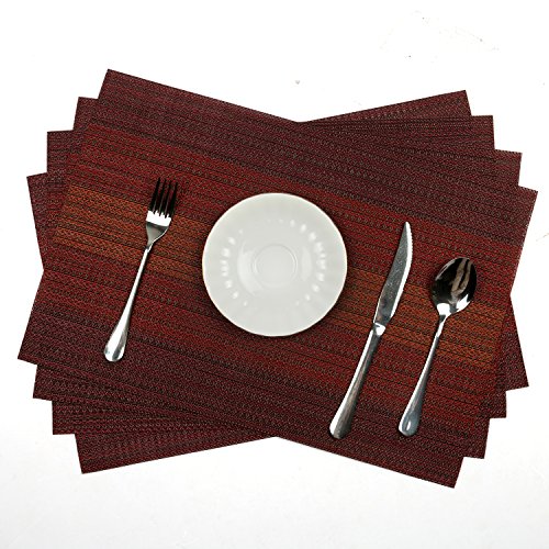 PAUWER Placemats Set of 4 Heat Insulation Stain Resistant Placemat for Dining Table Durable Crossweave Woven Vinyl Kitchen Table Mats Placemat (Red)