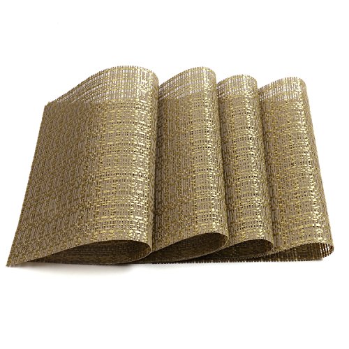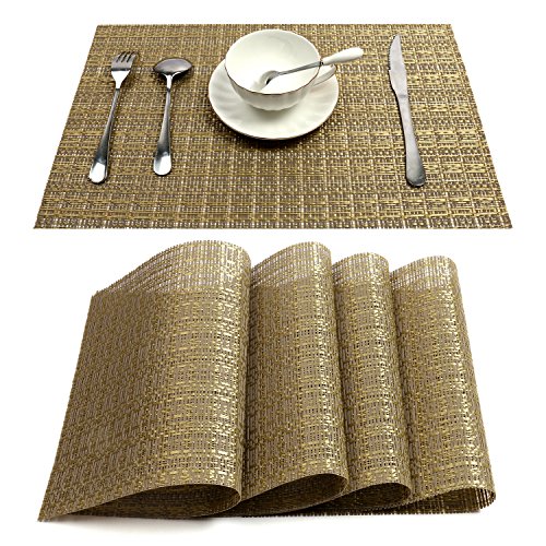PAUWER Placemats for Dining Table Woven Vinyl Non-slip Heat Insulation Placemat Washable Table Mats Set of 4