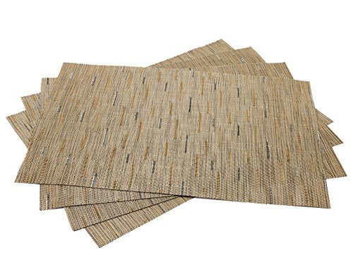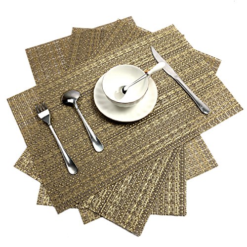 PAUWER Placemats for Dining Table Woven Vinyl Non-slip Heat Insulation Placemat Washable Table Mats Set of 6