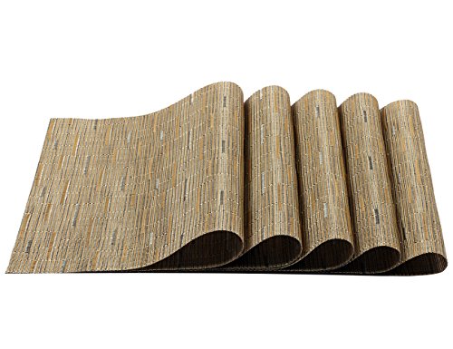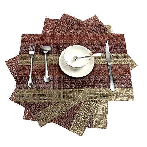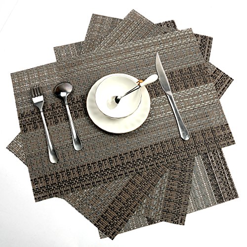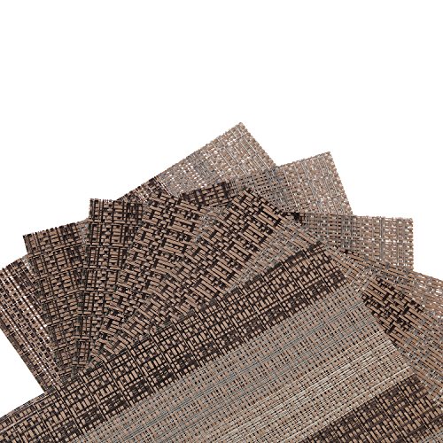 PAUWER Placemats for Kitchen Table Woven Vinyl Non-slip Heat Insulation Placemat Washable Table Mats Set of 6 (Coffee)