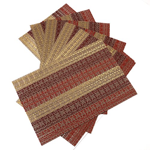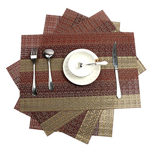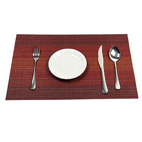 PAUWER Placemats Set of 6 Heat Insulation Stain Resistant Placemat for Dining Table Durable Crossweave Woven Vinyl Kitchen Table Mats Placemat (Red)