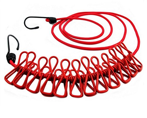Lesirit Portable Retractable Travel Clothesline With 12 Pcs Clips (Red,Pack 1)