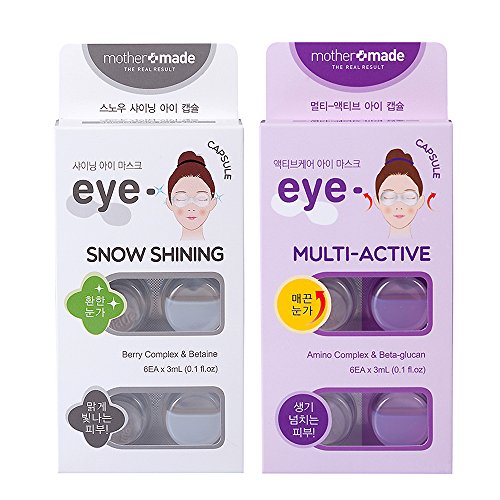 -. Feature : Anti-Wrinkle and Anti-Aging: mothermade® Multi-Active Eye Mask can instantly hydrate and provide the nutrition to your skin around the eyes with powerful Hyaluronic Acid, Beta-glucan, Bergamot Fruit Extract. The Powerful anti-aging agent, amino acid complex of 18 kinds of Essential Amino Acid help the eye areas fully revitalized and wrinkle-free. It minimizes and softens the appearance of fine lines and wrinkles while improving skin tone and texture. / Reduce Dark Circles and Puffiness: mothermade® Snow Shining Eye Mask easily diminishes dark circles and puffiness around your eyes by detoxiflying your skin and removing harmful radicals with anti-oxidant 5 kinds of berries such as Bluebery Fruit Extract, Acerola Fruit Extract, Orange Oil, Acai Berry Extract, Billberry Extract as well as betaine, Niacinamide, Sodium Hyaluronate. / Safe for all Skin Types: It is FREE of Parabens, Ethanol, Frangrance or dyes. It will not irritate or clog pores and thus safe for all skin types. / Brand-New Type of Eye Mask : The tablet-shaped, pressed eye capsule is individually packaged into one capsule while a pressed mask sheet is contained separately from essence. As soon as the mask is put into the essence part, it instantly transforms into an eye mask to present the fresh nutrition, moisture, and comfortable relaxing on eyes. Its shape covers from the eye lids to under the eye area, which takes care of whole eye health.