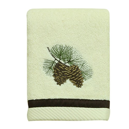 Studio : Bacova Guild Publisher : Bacova Guild Binding : Kitchen Product Description The natural look of tall evergreen and pinecones of the Westlake collection from Bacova Guild is sure to enhance your bathrooms decor. Made from terry cotton with an applique and embroidered design with a fabric trim. Matching shower curtains and hooks, towels and bath accessories available. Towel dimensions are 11" x 18". 0