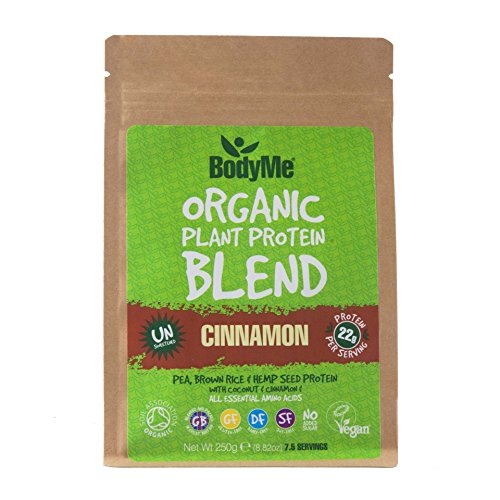 -. Title : BodyMe Organic Vegan Protein Powder Blend | Raw Cinnamon | 8.8oz 250g | UNSWEETENED with 3 Plant Proteins
