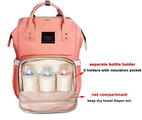 Large Capacity :Large main compartment, separate storage pockets include insulated pockets & wet clothes pocket, you can take in the milk bottle,water bottle, baby clothes, baby diaper,towel so on in diffrent separate pockets.