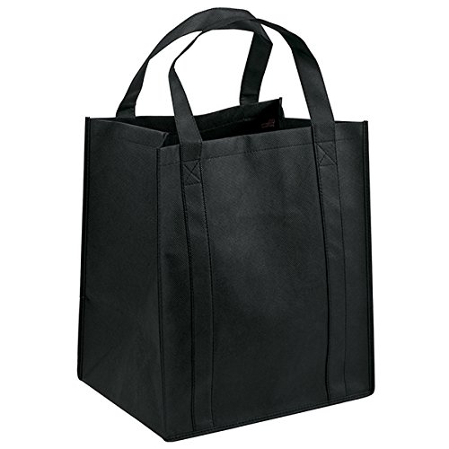 Pack of 3- Eco-friendly Reusable Bag Non woven Grocery Tote bag 15"H x 13"W x 10"gusset with handles in Black - Memorial Day Weekend Sale