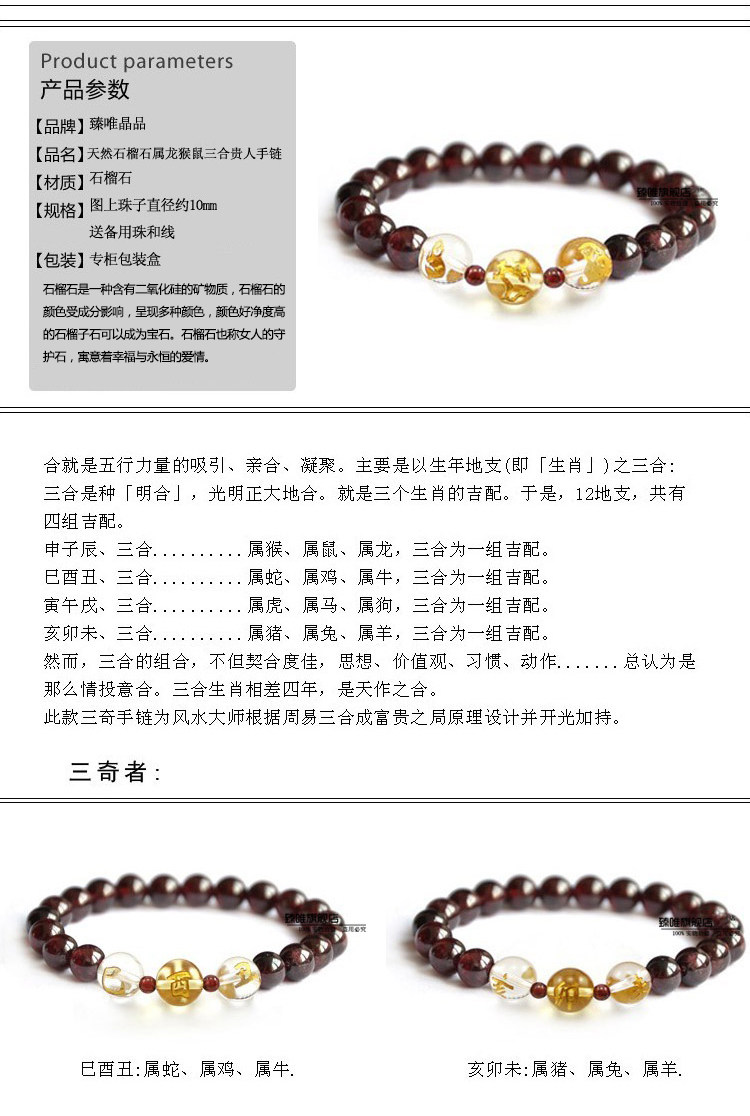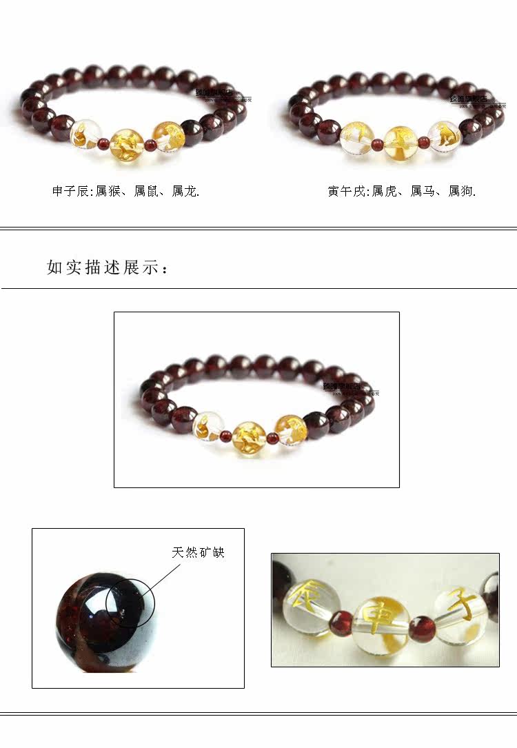 羊年吉祥物手链属龙猴鼠吉祥物手链三合 天然石榴石手链 女款