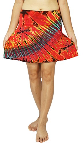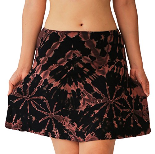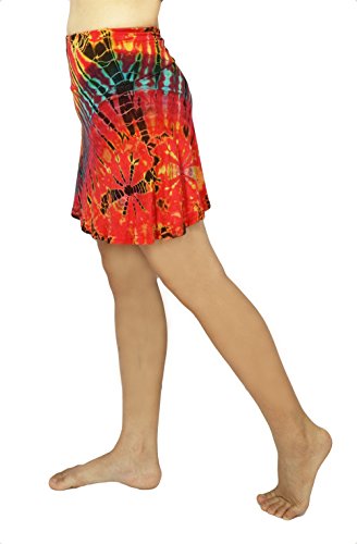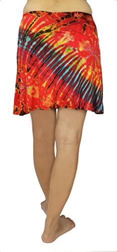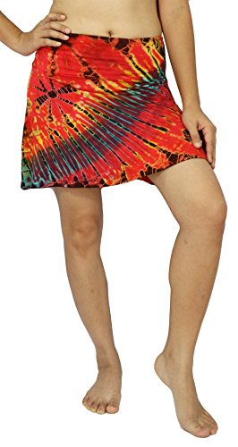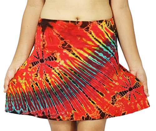 Binding : Apparel Product Description Cute, comfy and fun, our vibrant and luxuriously soft Tie-Dye 2.0 Mini Skirts are just plain cool. Paired with a solid top they can become the classic warm weather look. Tie-Dye 2.0 is a method of fabric dyeing from Thailand. Known as Mudmee in Thai, which means twist, the technique is unique because the background fabric is always colored, not white like traditional tie-dye. The resulting look is rich, vibrant and uniquely beautiful. All of our clothes are crafted by our own artisans in Thailand, using the finest fabrics and dyes available, to bring you apparel that is amazingly soft, durable and cool. The Coolest Clothes on the Web. This wonderful skirt is a joy to wear and own. Made from a spandex and rayon blend, it is very colorful with beautifully done tie-dye designs. It is also highly comfortable to wear you'll want to sleep in it. Perfect for everything from Yoga Meditation to running errands around town! Due to nature of tie-dye, slight color variation may vary in person. Enjoy yours today before its too late! (Approximate Measurement: Length - 16", Waist - 25" up to 38") 0