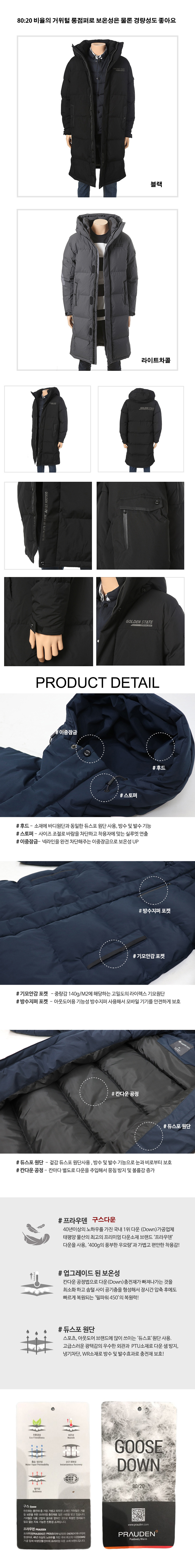 소재충전재-거위솜털80%,거위깃털20%, 겉감-나일론80%,폴리에스터20%