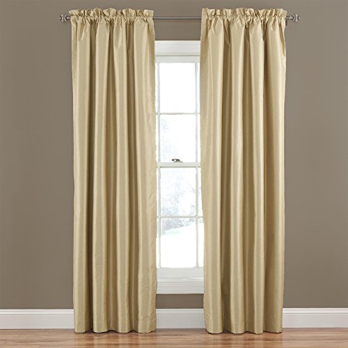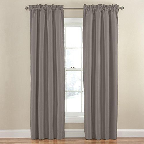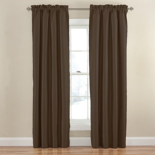 Transform any room in your home with the Eclipse Hayden blackout curtain. Independently tested, eclipse offers a superior blend of window fashion design and blackout technology for any decor. Update the bedroom, living room or dining room and enjoy the light blocking, noise reducing, energy-saving benefits of Eclipse. Perfect for daytime sleepers of all ages, home theater enthusiasts and energy saving conscious home owners, Eclipse curtains offer style versatility for any living space. The magic is in the Thermaback construction. The innovative foam-backing is applied to the fabric and allows you to enjoy all of the light-blocking, noise reducing and energy saving benefits, while providing the same fashionable style and elegance of naturally flowing curtains. Hang eclipse curtains in any bedroom to achieve an optimal sleeping environment. Each Eclipse Hayden rod pocket panel measures 42" wide in your choice of 63", 84" or 95" lengths. 3" rod pocket accommodates a 2.5 inch rod. Curtain rod sold separately. Available in 4 fashion colors including espresso, gold, blue and grey. Sold as single panel. 100% polyester. Machine wash cold, tumble dry, do not bleach. Imported.Feature