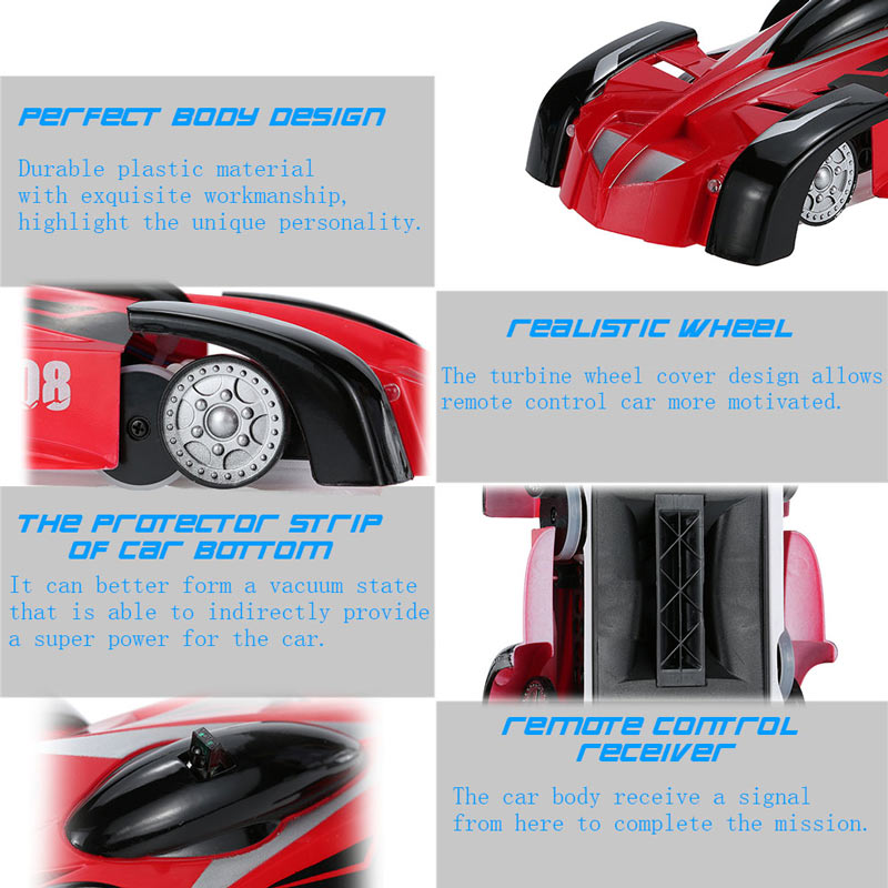 This mini RC wall climbing car can defy gravity. It can running on any smooth surface, such as wall, glass, ceiling, floor. In addition, superb functions and sound effects will bring you special enjoyment. Moreover, Super cool shape and lightweight