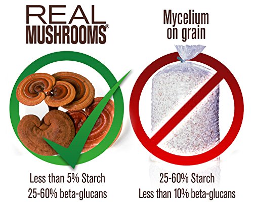 PURE REISHI MUSHROOM EXTRACT POWDER: Made exclusively from 100% log grown, organic reishi mushrooms. The fruiting bodies are hand picked to make the best extract possible. We use both a hot water and alcohol extraction method, also know as dual extraction, to obtain both the beneficial beta-glucans and triterpenes, plus thousands of other nutrients from the mushroom. We do not add any mycelium, starch, grains, or fillers into our products. Just 100% pure mushrooms.