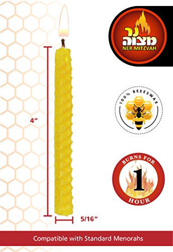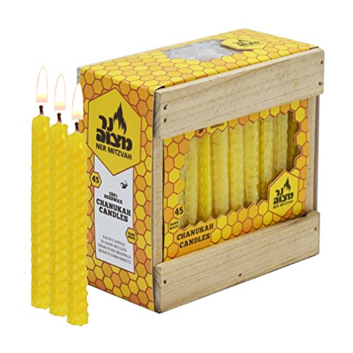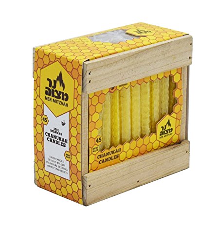 Honeycomb Chanukah Beeswax Candles - Standard Size Candle Fit Most Menorahs - Premium Quality Pure Bees Wax - Natural Yellow Amber - 45 Count For All 8 Nights of Hanukkah - by Ner Mitzvah