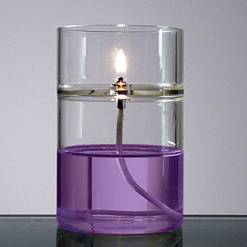 - Hand blown, Single-Piece Glass Oil Lamp Including Wick, Aluminum Collar and a Small Plastic Funnel for Easy Refilling. The oil lamp uses a 2.6mm wick. Replacement wicks which can be purchased on Amazon http://www.amazon.com/dp/B00PUX3IOC.
