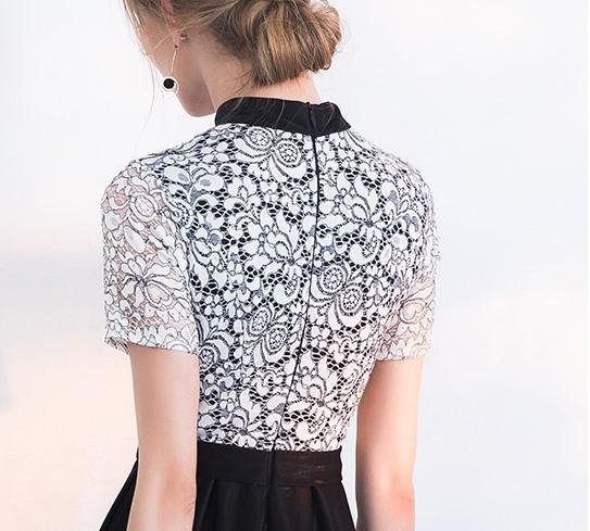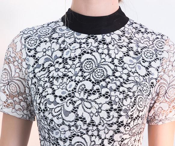ホワイトのレースにブラックのスカートでメリハリをつけて。