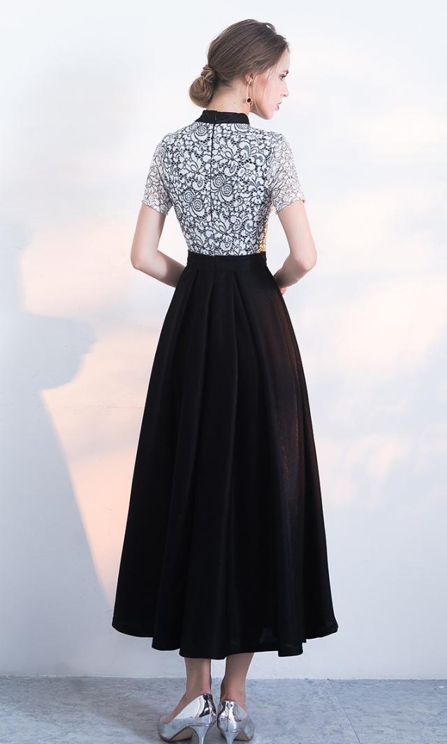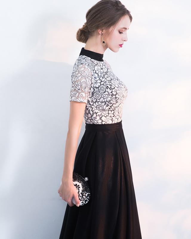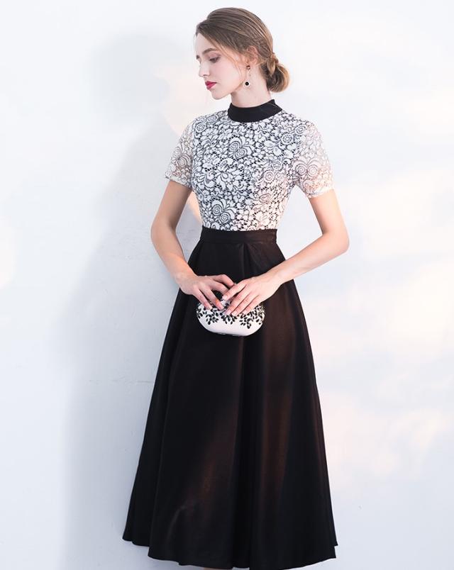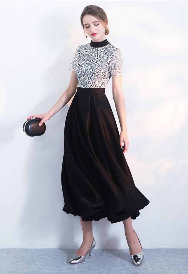 ドレス パーティードレス ロングドレス ミモレ丈ドレス 半袖 総レース レース クルーネック フレア ハイウエスト フォーマル 上品 エレガント 清楚 パーティー ブライダル 結婚式 二次会 披露宴 婚活 海外 ノーブランド