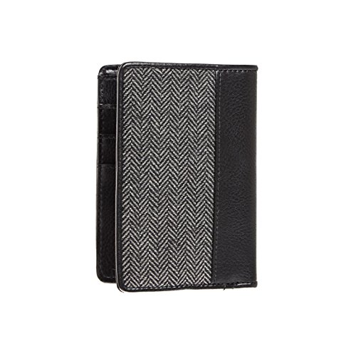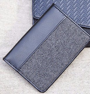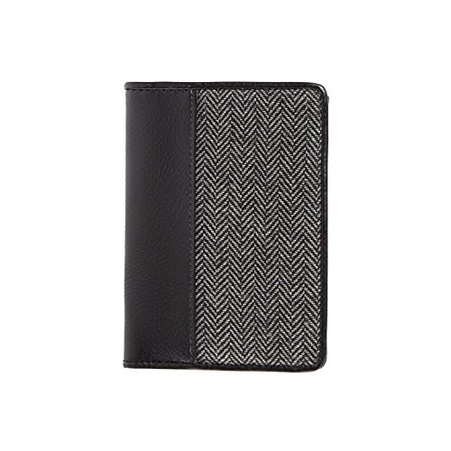 Product Description design Name: Georgio design#: 4C0404 - 040A Grey Herringbone / Black Passport Billfold Wallet Material: Wool Blend Herringbone / Waterproof Vegan Soft Leather design Features: Identity Thief, Credit/ATM Card and Driver License RFID Protection Technology Exterior Dimensions: 5.5" height X 4.0" Width X 0.5" Depth Exterior features: Waterproof vegan soft leather piping for edge protection Grey wool blend herringbone fabric Waterproof vegan soft leather Interior Features: 3 credit card slots individual stitched and each stainless steel lined Side wings for additional storage Money welt pocket Signature blue stripe lining Comes In Protective Storage Signature Bag 0