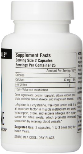 (Source Naturals)/Vitamins Dietary Supplements/Supplements/DIRECT FROM USA/Source Naturals L-Arginine Free-Form, Promotes Increased Circulation, 50 Capsules, Pack of 2