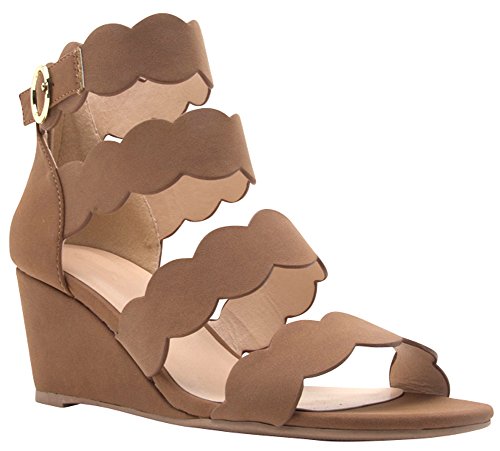 Product Description This wedge sandal from Cambridge Select features sculptural vamp and ankle straps, adjustable metallic buckle at ankle, and a mid-height wedge heel. Imported. 0