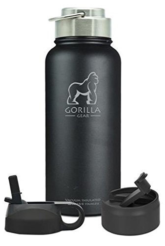 Gorilla Gear 40 oz Vacuum Insulated Powder Coated Leak-Proof Water Bottle | Double Walled Stainless Steel Travel Bottle | No Sweating, Keeps Your Drink Hot & Cold Sturdy, Durable: This rugged sports water bottle is made from high quality food grade 18/8 stainless steel. It is crafted with a powder coated finish for a better grip and sleek look.