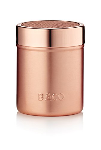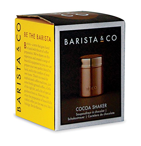 Studio : Barista Co Publisher : Barista Co Binding : Kitchen Product Description This Cocoa Shaker features Barista Co's exclusive contemporary and sleek design with a brushed copper finish.The shaker adds that elegant finishing touch with an ever so slight indulgance to your coffees- it is perfect for sprinkling chocolate or cinnamon onto freshly frothed milk.The shaker is supplied with a PP lid to prevent moisture entering the pot when not in use. It has a height of 9.8cm/4in, a diameter of 7.8cm/3.1in and it should be cleaned with a soft cloth in warm soapy water. 0