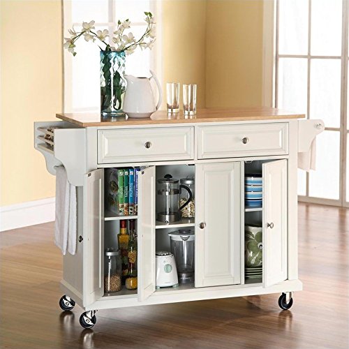 - Title : Crosley Furniture Natural Wood Top Kitchen Cart/Island, White