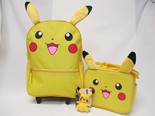 -. Binding : Toy -. Brand : Disney -. EAN : 0788454206109 -. Feature : Pokemon Pikachu Rolling Backpack set! / Rolling wheeled backpack / Lunchbox / Plush Toy / This Complete Set is offered by Seller Bag2School -. Label : Disney -. Manufacturer : Disney -. PackageQuantity : 1 -. ProductGroup : Toy -. ProductTypeName : TOYS_AND_GAMES -. Publisher : Disney -. Studio : Disney -. Title : Pokemon Large 16" Rolling Backpack Roller Book Bag, Lunch Box & 4" Pikachu Plush -. UPC : 788454206109