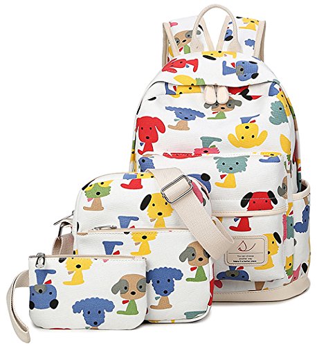 -. Feature : ★Set of three with a backpack, a matched cross body, a matched wristlet handbag / ★Cute animal pattern design with environmental canvas material, ergonomic, comfortable, wear-resistant, lightweight, and easy to clean / ★Multifunctional: The main inner compartment of the backpack can put notebooks, magazines, A4 files; 2 side pockets can carry a water bottle and an umbrella; 1 zippered pocket located on the front, perfect for a wallet or a snack / ★OVERALL:Cute backpack, and decent quality. It can fit a decent amount of stuff (notebooks, binders, other school supplies, etc). The straps are very comfortable. We would recommend this if you are looking for a nice looking backpack for casual/school use. / ★Occasions: Daily use / school / college / travel /shopping