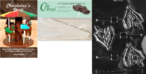 Cybrtrayd 45St50Bk-C040 'Santa Face Lolly' Christmas Chocolate Candy Mold with 50 4.5-Inch Lollipop Sticks and Chocolatier's Guide