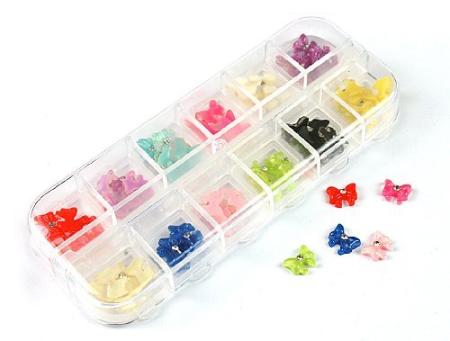 Charm 12Color 60pcs 3D Bowknot Bow Tie Rhinestone Nail Art Decoration