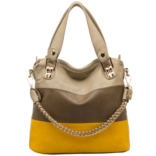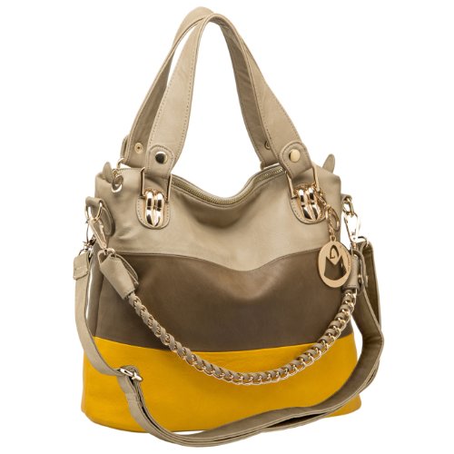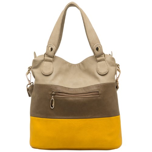 Classic Tri Tone Everyday Hobo Shoulder Bag for Women, Yellow