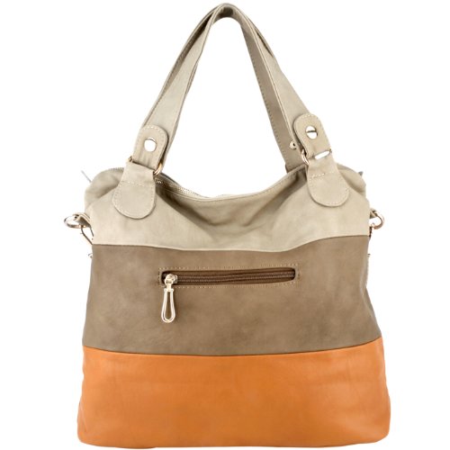 Classic Tri Tone Everyday Hobo Shoulder Bag for Women, Beige
