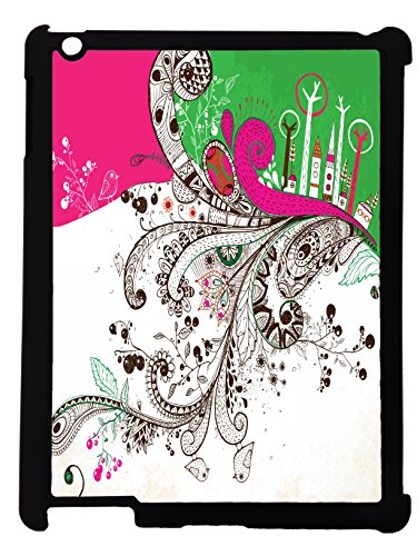 Apple iPad 2/3/4 Hard Plastic Case Illustration of landscape and artistic flowers Design