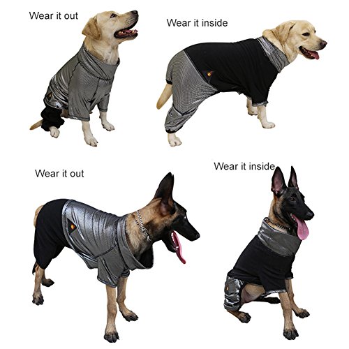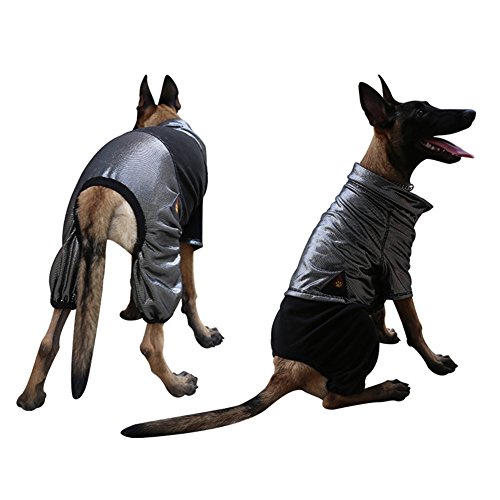 -. Feature : High-quality Material- Made of superior polyester fleece, anti-static and warm, effectively keeps your loved pet warm in the winter even going outside with you. / Heat Reflection Fabric- Not only capable to keep your lovely pet's temperature, but also emits heat reflected by sun to achieve warmth effect for your pet. / Elastic Bands- Equipped with elastic bands on neck, tail, trousers legs and bottom hem, comfortably wrapped your pet's body without tightening and constraining it. / High Performance- Fine workmanship with delicate sewing and stitch, can be worn on both sides, avoids the trouble of frequent cleaning, makes you have more time to accompany with your sweet dog. / Wide Application- Perfectly suitable for medium and large-sized dogs, such as golden retriever, labrador retriever and shepherd dog, be an excellent helper for camping and travel in the autumn and winter.