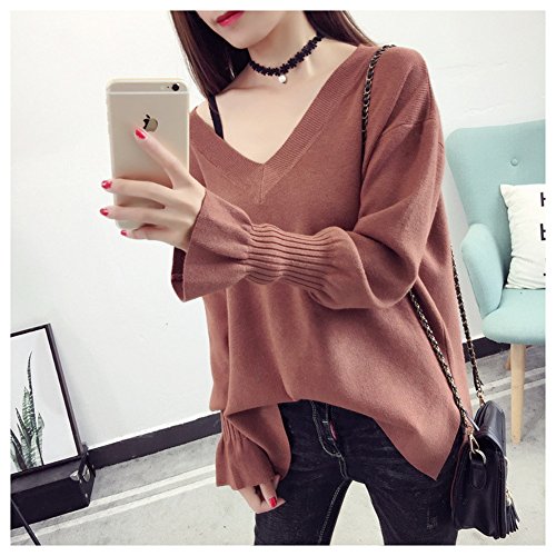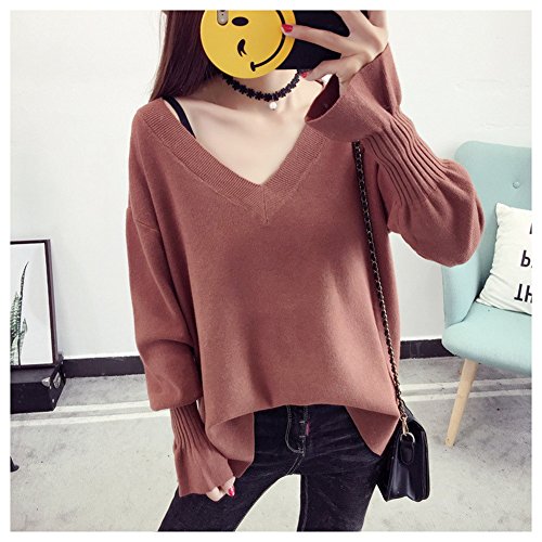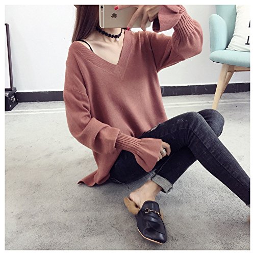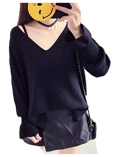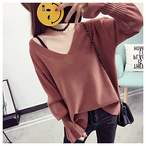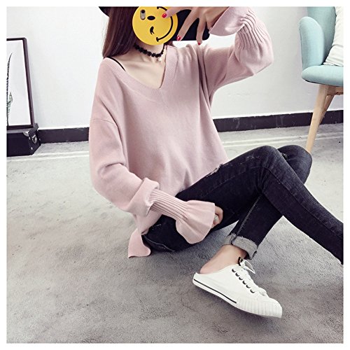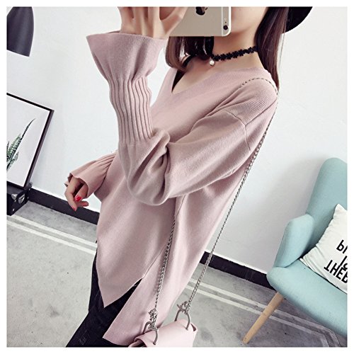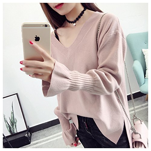 -. Title : (レアノリ)Leonori ニット フレア リブ袖 長袖 V ネック 薄手 洗える セーター シンプル 無地 レディース