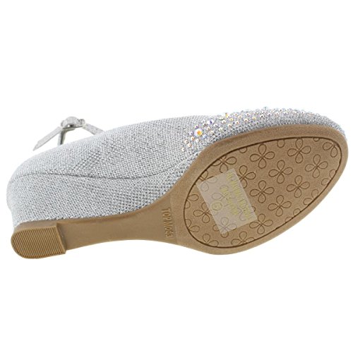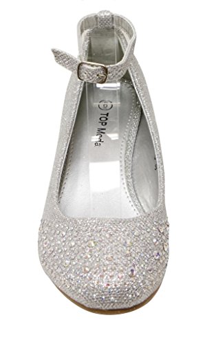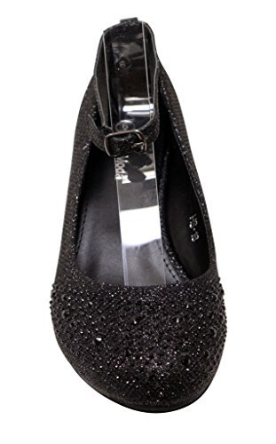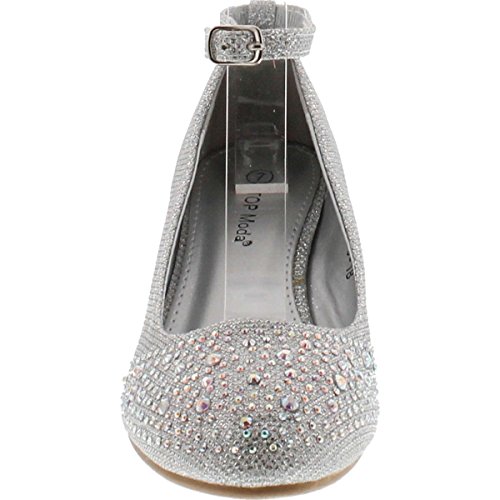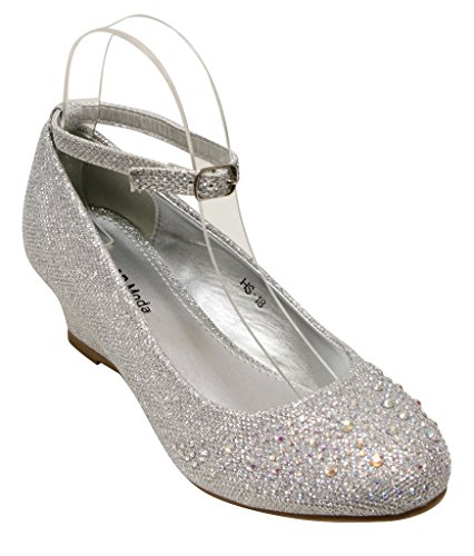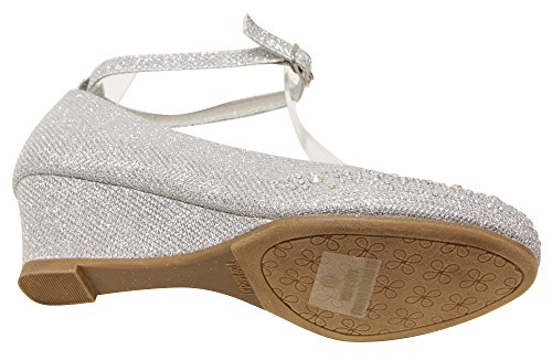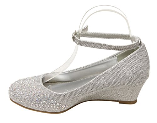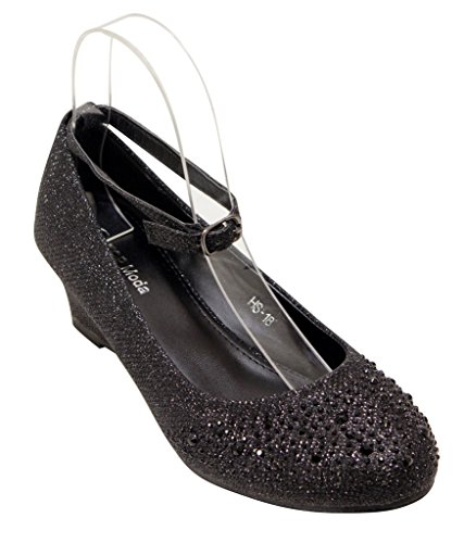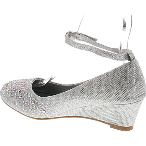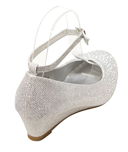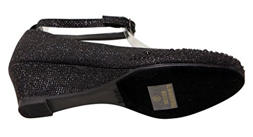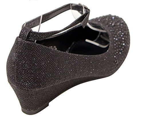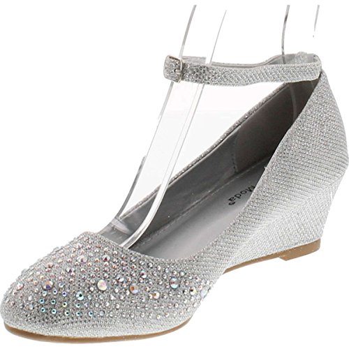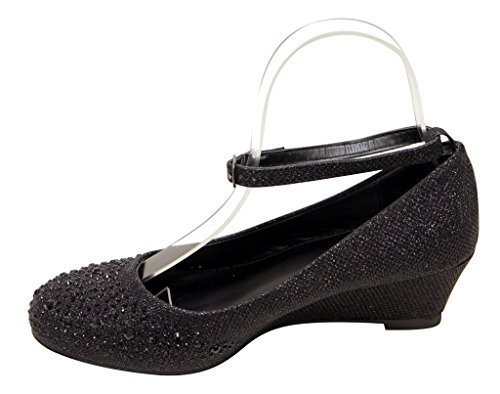 Top Moda Women's Wedge Glitter Rhinestone Round Toe Adjustable Ankle Strap Shoes