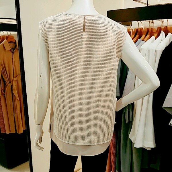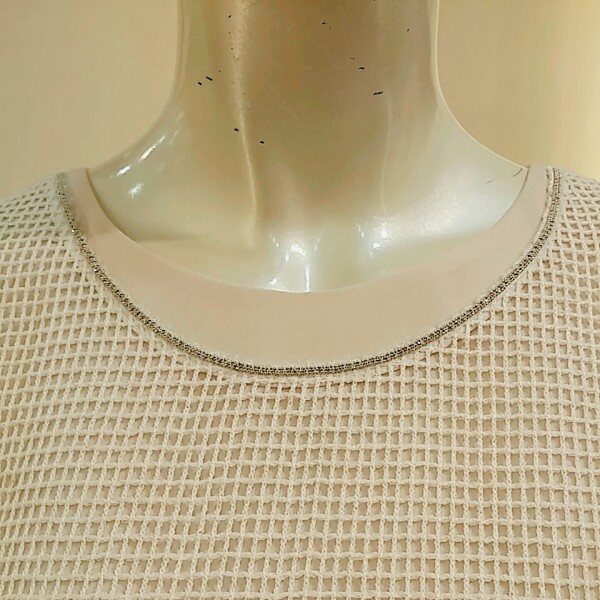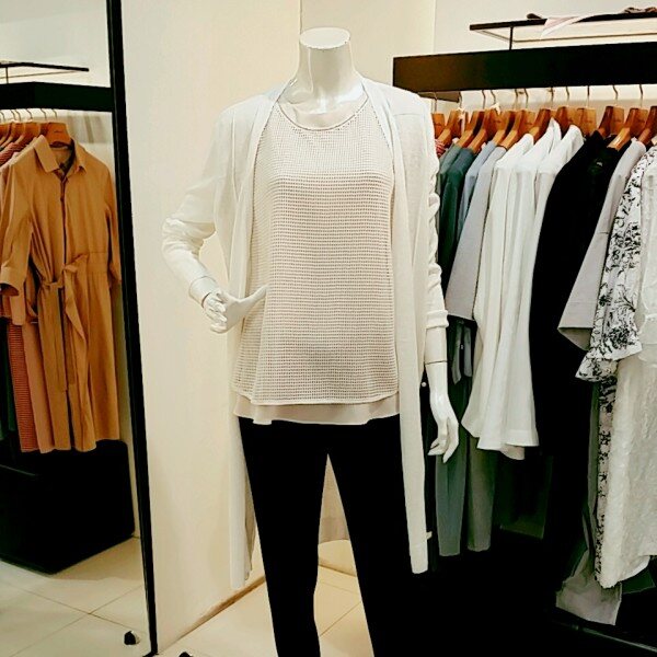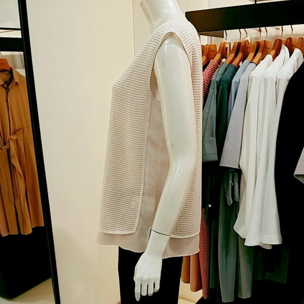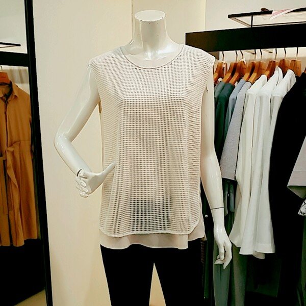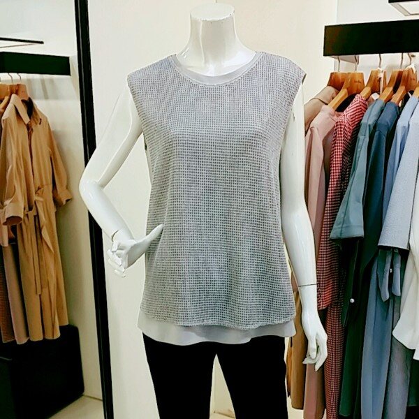 고급스러운 니트짜임 배색의 나시 블라우스에요~ 목선파임도 깊지않아서 활동하실때 신경 덜 쓰이시구요~어깨라인이 살짝 내려오는 나시라서 겉옷 벗으셔도 많이 민망하진 않으닐꺼에요~ 총장도 Y존과 ?을 거의 다 덮어주니까 스키니한 하의에 입기도 좋으세요~ 니트배색이 있어서 가디건에 입으시게 되면 세트느낌도 나요~~^^ 니트배색도 레이온이 함유된 차가운 소재라 덥지않으실꺼에요~사이즈는 66입으시는 분께서 55입으셔도 맞으세요~~