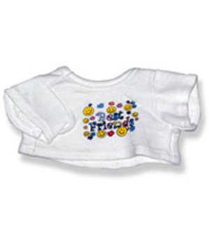 -. Binding : Toy -. Brand : The Bear Mill -. Color : White -. EAN : 0611265003066 -. Feature : white teddy bear t-shirt / Best Friends text on front with smiley faces / fits 8 inch plush -. Label : The Bear Mill -. Manufacturer : The Bear Mill -. Model : 2035 -. MPN : 2035 -. PackageQuantity : 1 -. PartNumber : 2035 -. ProductGroup : Toy -. ProductTypeName : TOYS_AND_GAMES -. Publisher : The Bear Mill -. Studio : The Bear Mill -. Title : Best Friends T-Shirt 8 inch - 2035 Fits 8" - 10" bears, includes Build a Bear, The Bear Mill, and Stuff your own Animals. -. UPC : 611265003066