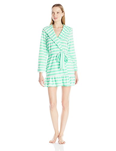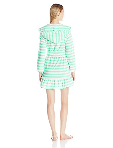 Betsey Johnson Women's Vintage Terry Ruffle Hooded Robe, Mojito Stripe/Mint Chocolate Chip, X-Small
