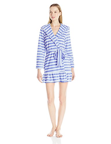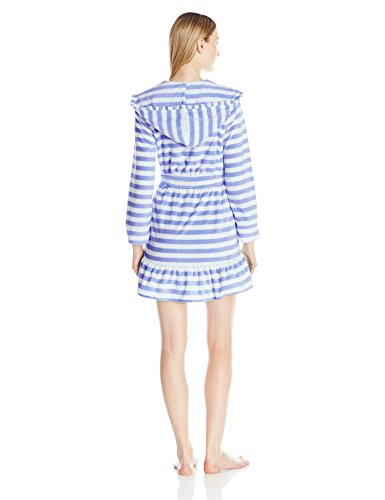 Betsey Johnson Women's Vintage Terry Ruffle Hooded Robe, Mojito Stripe/Song Sung Blue, Small