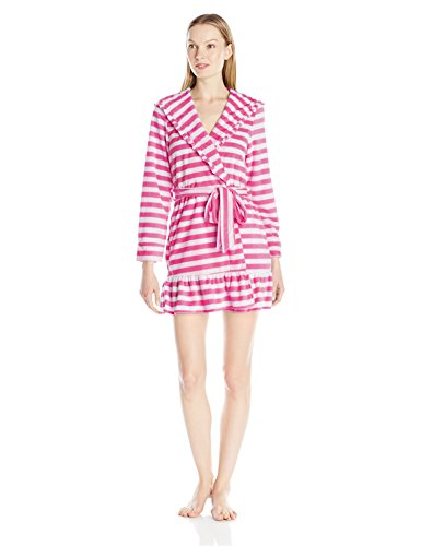 Betsey Johnson Women's Vintage Terry Ruffle Hooded Robe, Mojito Stripe/Sugar Daddy, Small