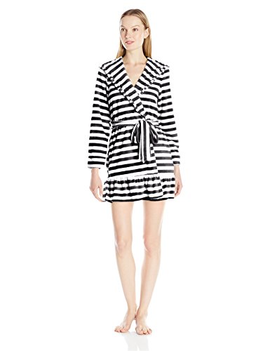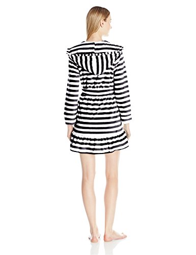 Betsey Johnson Women's Vintage Terry Ruffle Hooded Robe, Mojito Stripe/Raven Black, Small
