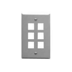 -. Feature : 6 Port; Gray; Easy snap in port design / Faceplate / Port fits all ICC jacks and modules / Contemporary design / Single gang