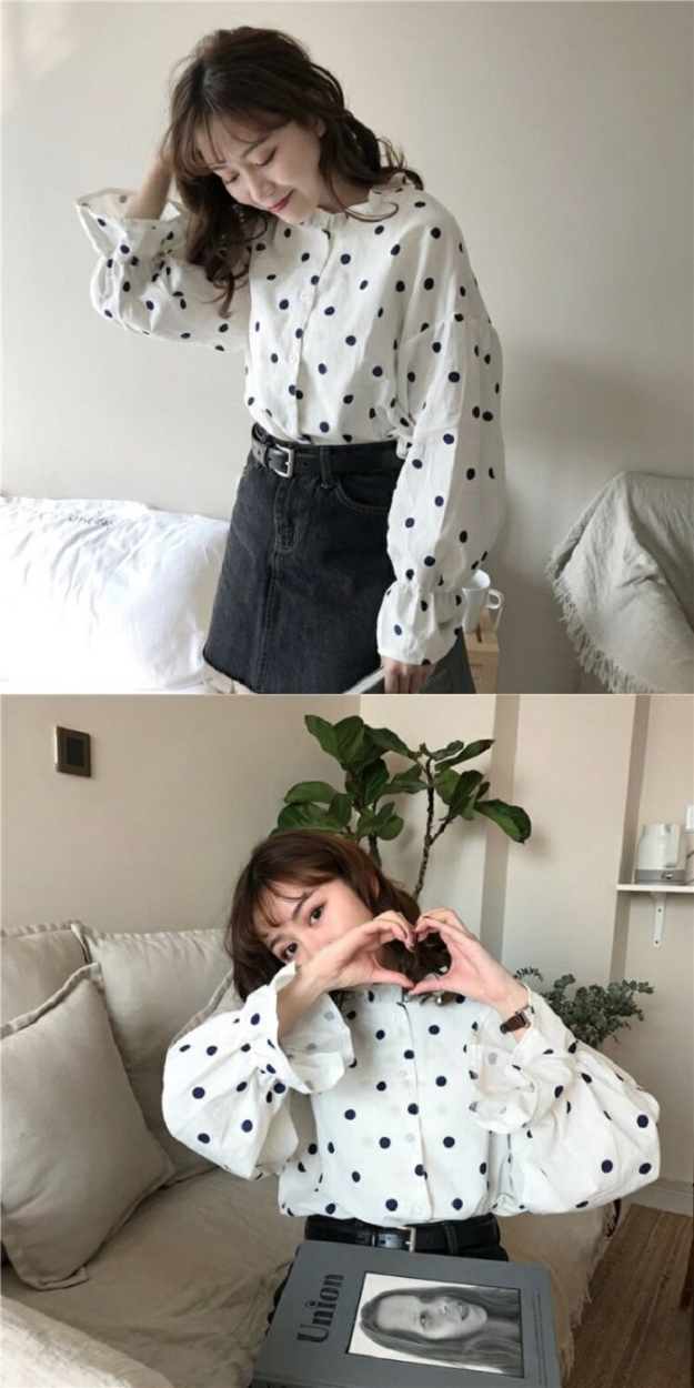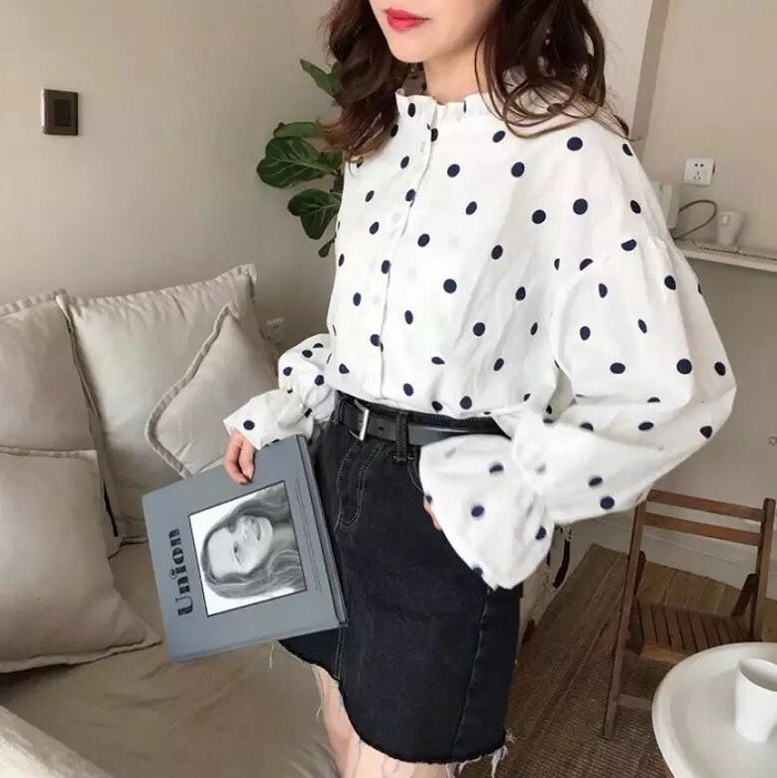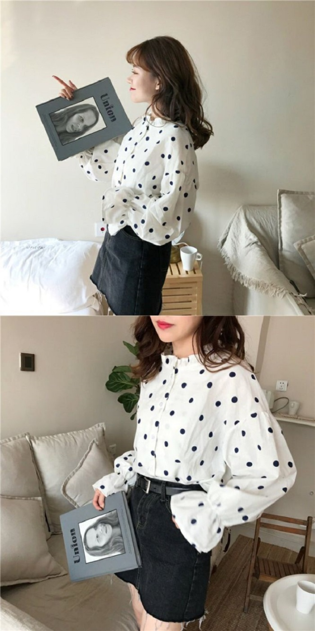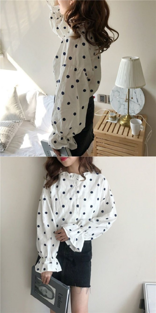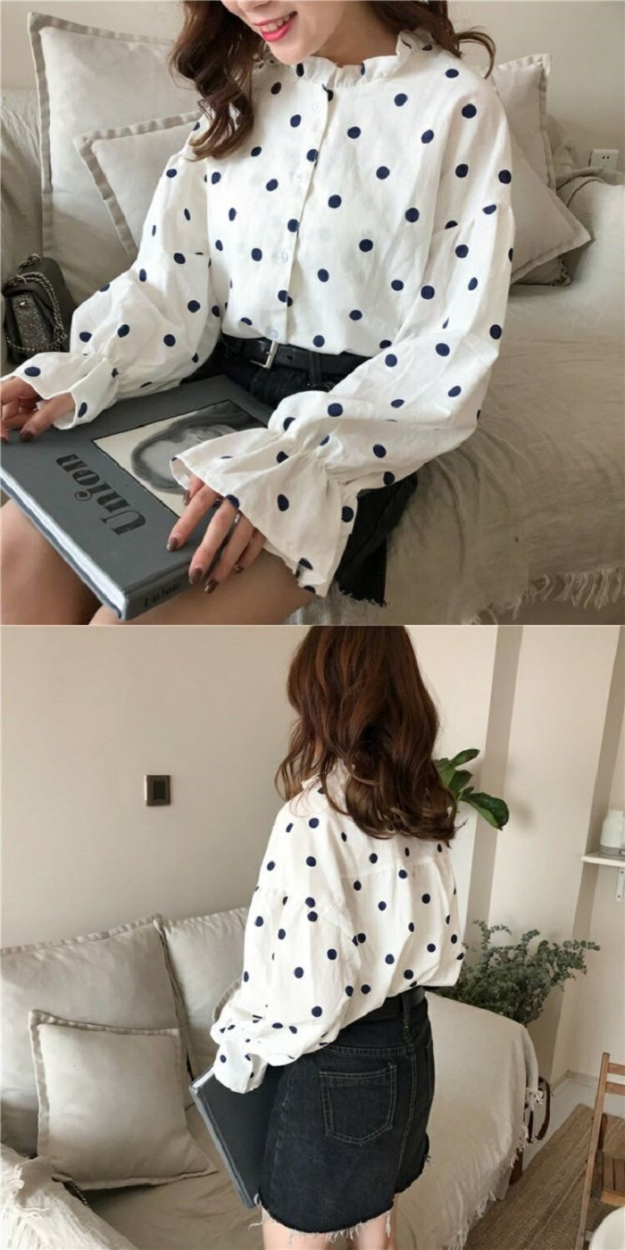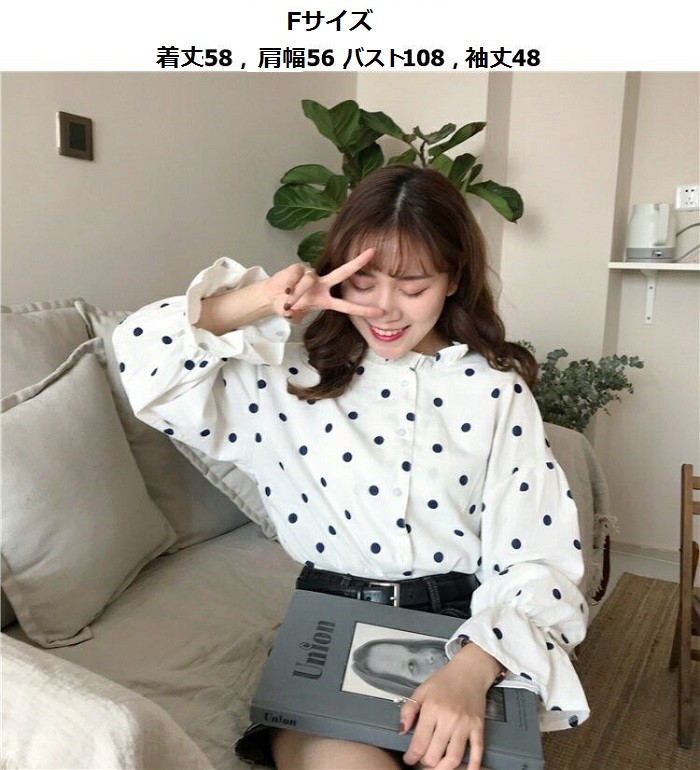 レディース ドット ブラウス シャツ 長袖 フリル バルーン スリーブ トップス ガーリー 可愛いトレンドドット柄 女の子らしい ブラウスサイズ:Fサイズ(着丈58 肩幅56 バスト108 袖丈48)カラー:写真色フリル袖のゆるさがとってもキュートでガーリー!ドッド柄がおしゃれな長袖ブラウス★今季トレンドのパフ スリーブで、襟はスタンドカラーのきれいなデザインになっています。スカートやデニムと合わせてカジュアルにまとめるなど、幅広いコーディネートが楽しめます♪