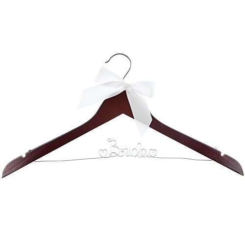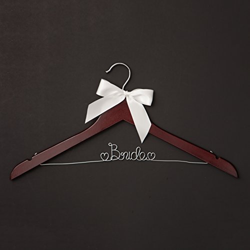 Bride to Be Wedding Dress Hanger Wooden and Wire Hangers for Gown (Mahogany Wood Silver Wire)
